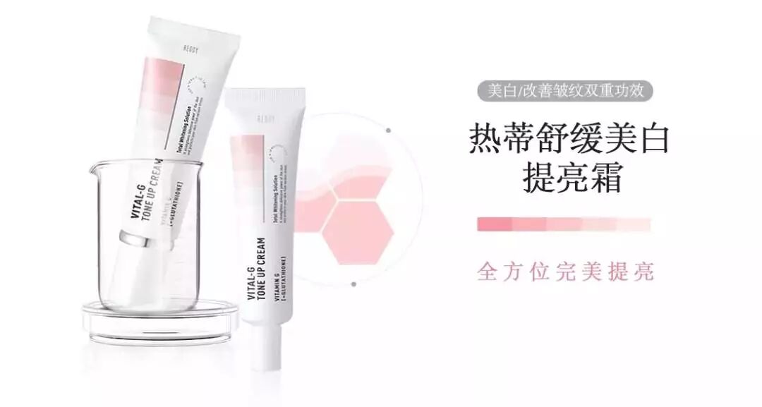 Reddy提亮霜里,就添加了维生素G这个成分,它能抑制黑色素的合成。不仅让皮肤变白、还会增加皮肤弹性,让皮肤看上去更细腻有光泽,达到自然提亮肤色的效果!