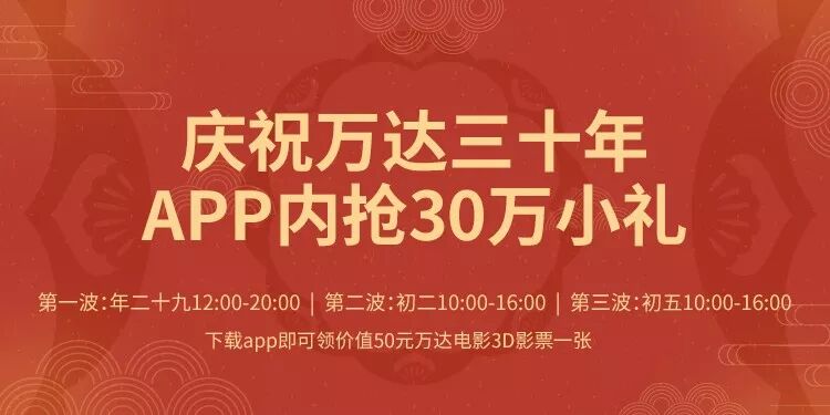 - 万达30万元红包雨来袭!一共3波,一波赛一波