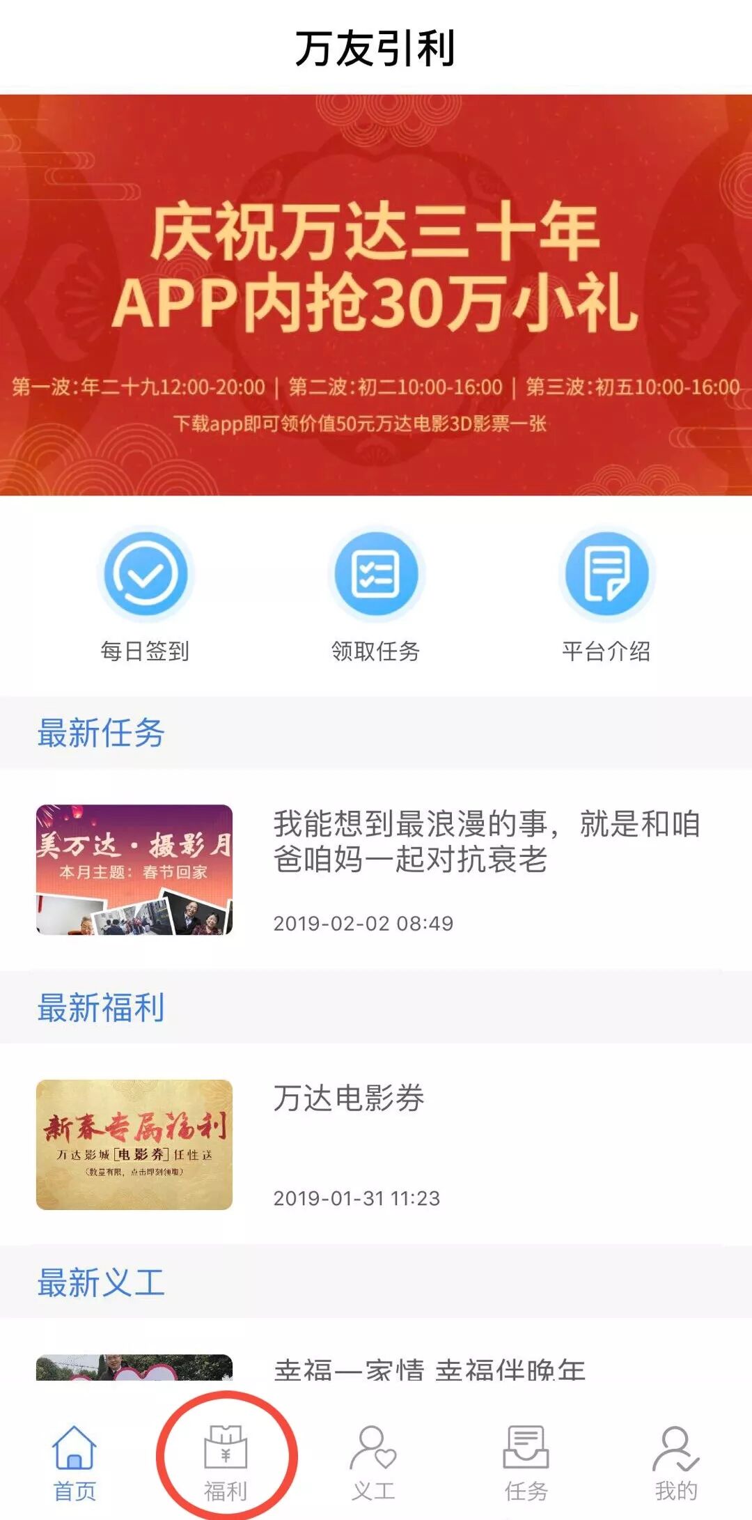 - 万达全员义工平台“万友引利”今日上线!万达人专属的精神家园
