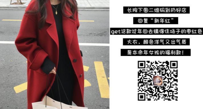 所以,长按下图二维码到“扔好店”,回复“新年红”,get这款过年回去镇得住场子的枣红色大衣,颜色洋气又出气质,是本命年女孩的福利款!