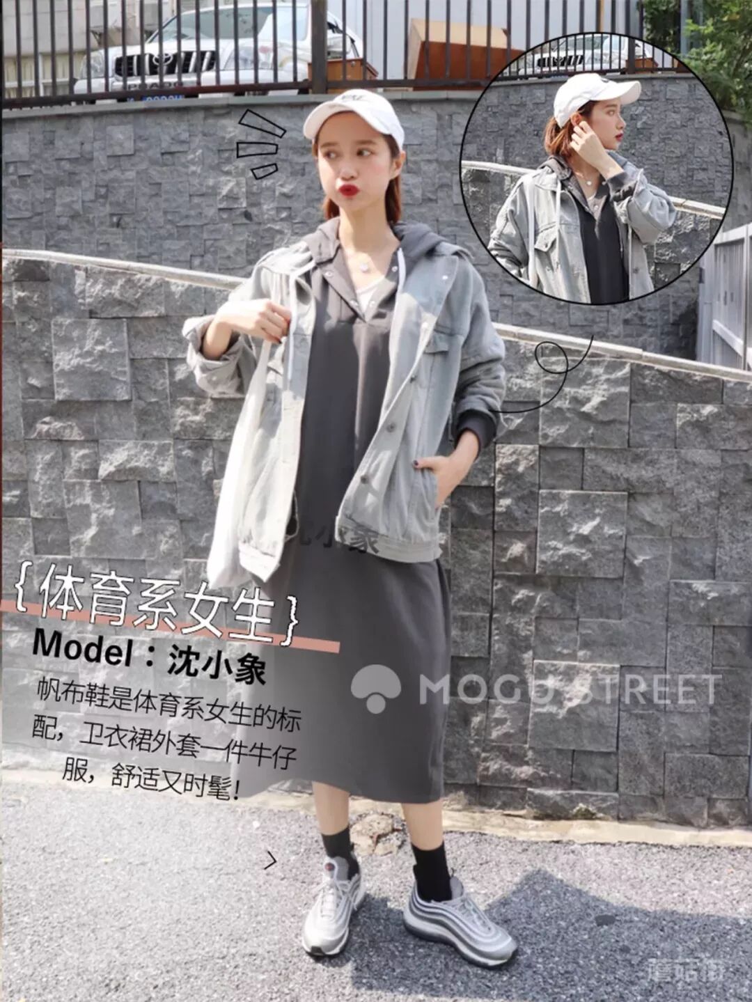 体育系女生的穿搭以休闲风为主,但这并不意味着必须每天都是T恤运动长裤这样的无聊搭配!长款卫衣裙外搭牛仔外套,休闲舒适动感满满,时髦感也是在线的~