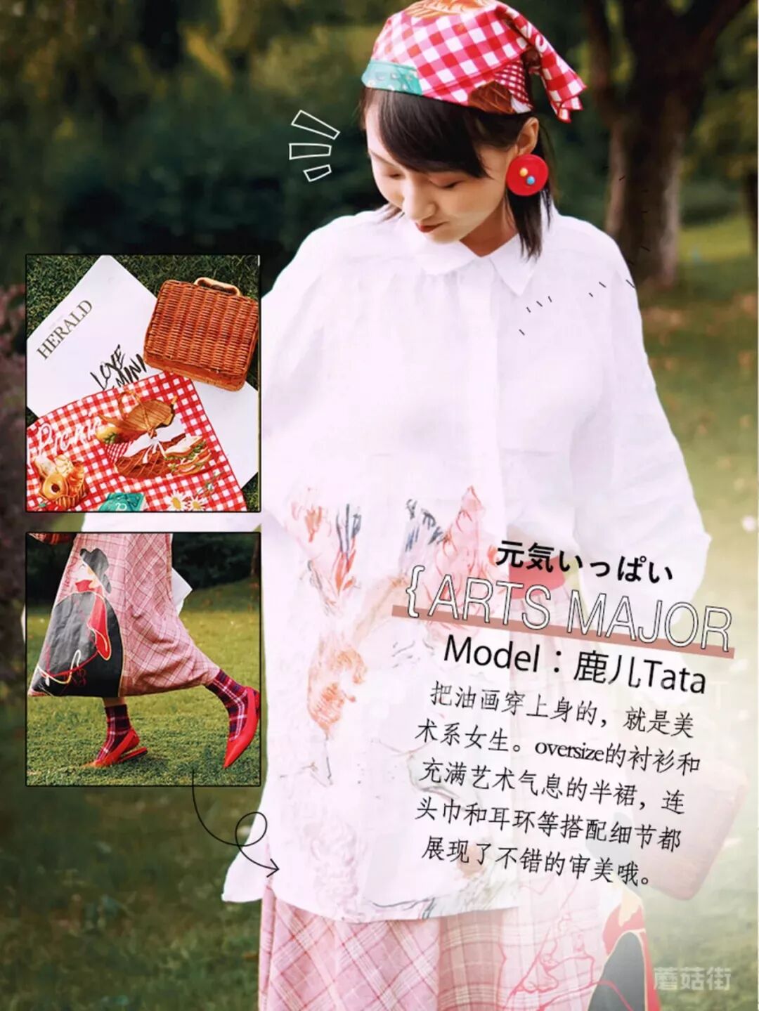 美术系女生的艺术天分同样体现在了穿搭上,天马行空的想象力和大胆的创意,穿搭很有辨识度。
