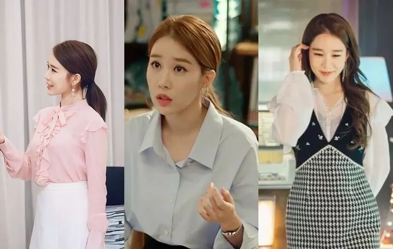 韩剧女主似乎都很偏爱质感轻柔的衬衫来搭配半裙或长裤。衬衫本来就自带干练、清爽的气质,穿去上班穿既有气场又不会让人太有距离感,关键还能将淑女气质诠释得非常到位。