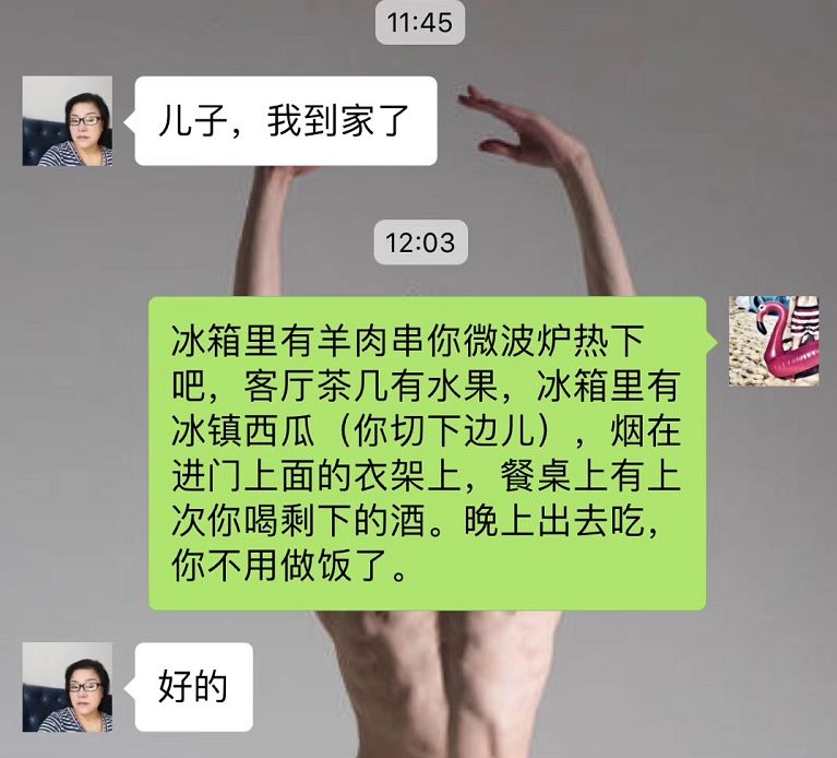 “人家都是父母殷殷叮嘱孩子,咱家是孩子殷殷叮嘱父母。妈你说你都一把年纪了能让我少操点心吗?不过话虽然这么说,妈呀,我希望你以后一辈子,也都痛痛快快的不用操心。麻将搓起来广场舞跳起来,老了也是个抽烟喝酒的朋克老太,啥事儿都交给我照顾就行。”