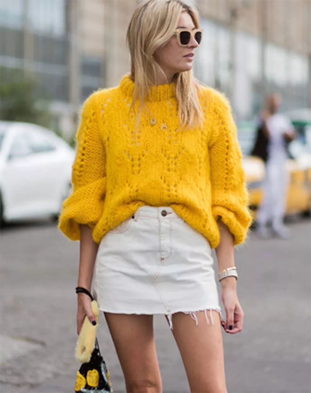 夏天的牛仔裙别着急收起来,它和毛衣能搭出随性又潇洒的美感。