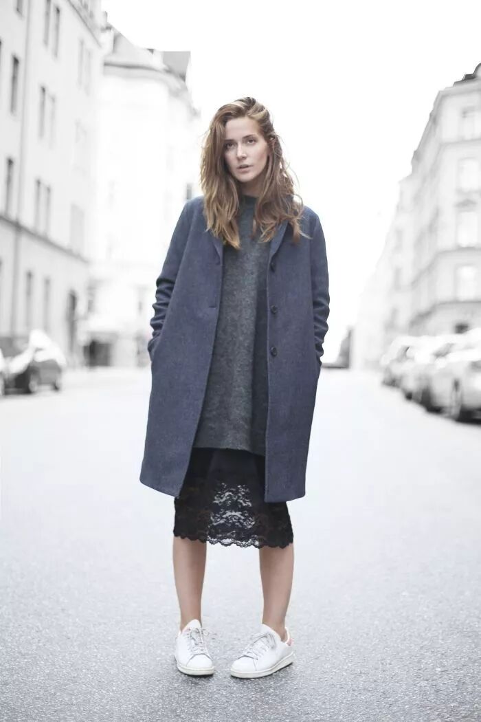 蕾丝裙搭配毛衣有数不尽的温柔和性感,宽松的毛衣下摆露出一点蕾丝边,性感小女人一枚!
