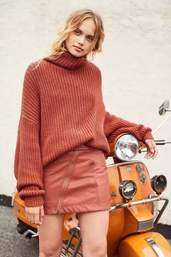 皮裙在夏天穿多少有点略略尴尬,但到了秋天它就是再合适不过的存在了。这个帅美界的代表,和柔软温暖的毛衣组CP,可谓“刚柔并济”,平衡得刚刚好!