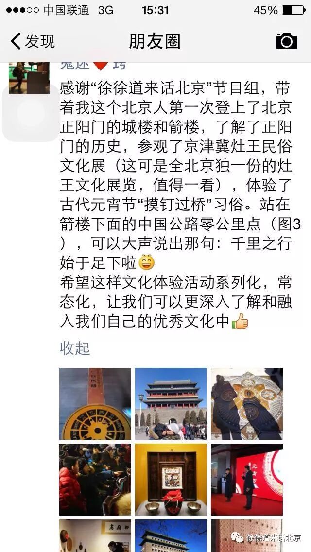 有100多位听友参与了这次活动,这些听友有幸进入目前不对外开放的正阳门箭楼楼下,体验老北京正月十五的传统民俗活动--走桥摸钉。这场线下活动,也和广播节目中的元宵节特别节目相呼应,让听众感受到了线上线下互动的欢乐。值得一提的是:绝大多数听众都是第一次登上正阳门!他们兴奋和激动之情可想而知!