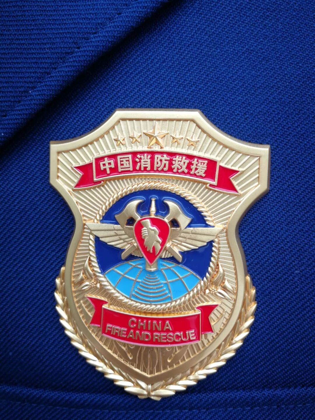 在“火焰蓝”制服中,最特别的当属胸前别着的新徽章。两把消防斧,一把水枪,体现了消防不改的责任,蓝色的地球象征了全天候24小时待命,底下的信号,则含有综合性技术搜索救援的意义。
