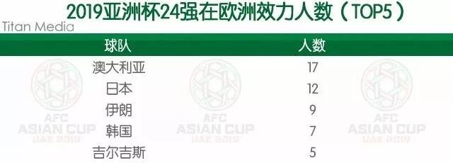 澳大利亚成为本届亚洲杯中拥有最多在欧洲效力球员的国家队。