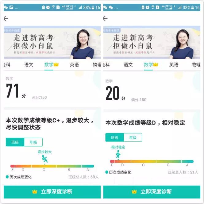 学校公布的女儿的成绩单