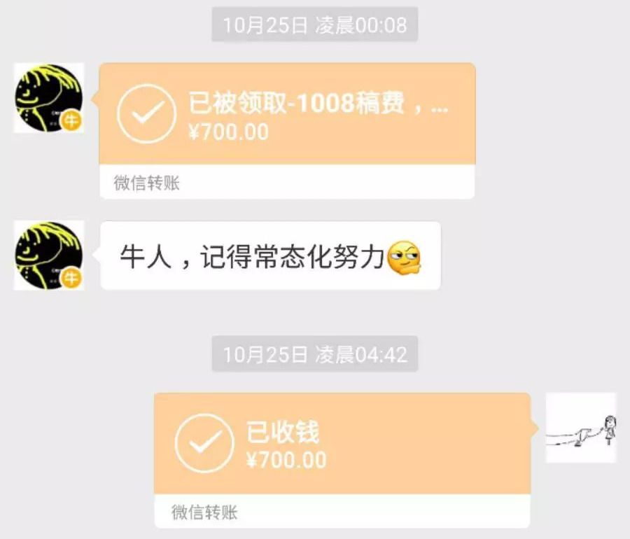可我写东西都是随心所欲,这样岂不是背道而驰,样样精通样样稀松了?幸好,在我感觉彷徨无措的时候,剽悍晨读内容组对社群老铁伸出了橄榄枝,有前期刻意练习的积累,加上确定了方向后的专注和努力,我终于通过晨读内容组的严格考核,成功进驻,并已经上稿3篇。不到一年,我意外地实现了写作变现。