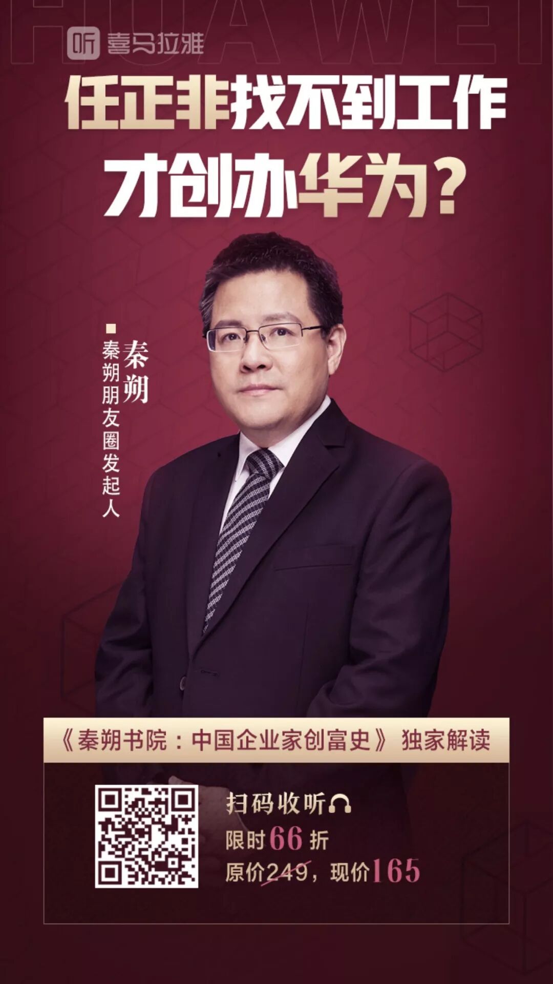 秦朔老师最新精品课程《秦朔书院:中国企业家创富史》在喜马拉雅正式上线,秦朔老师三十年从业生涯中,采访过包括任正非、董明珠、王兴、张一鸣在内的多位知名企业家,积累了大量一手访谈资料,凝结成一部改革开放以来中国顶级企业家的创富历史。扫描下方海报中的二维码进入课程页面领取66折优惠券~(购买过秦朔书院合集的用户,专辑包含本季内容,请勿重复购买)