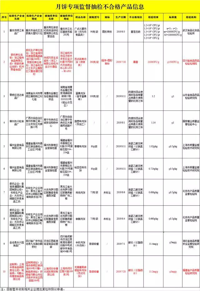 10批次月饼不合格!