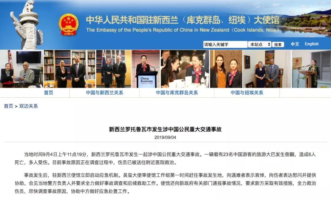 - 痛心!新西兰一辆载有23名中国游客大巴侧翻,致6死多伤