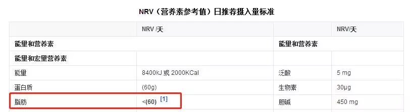 根据国家公布的NRV数据, 人体每天正常的脂肪摄入量以不超过60克为宜。