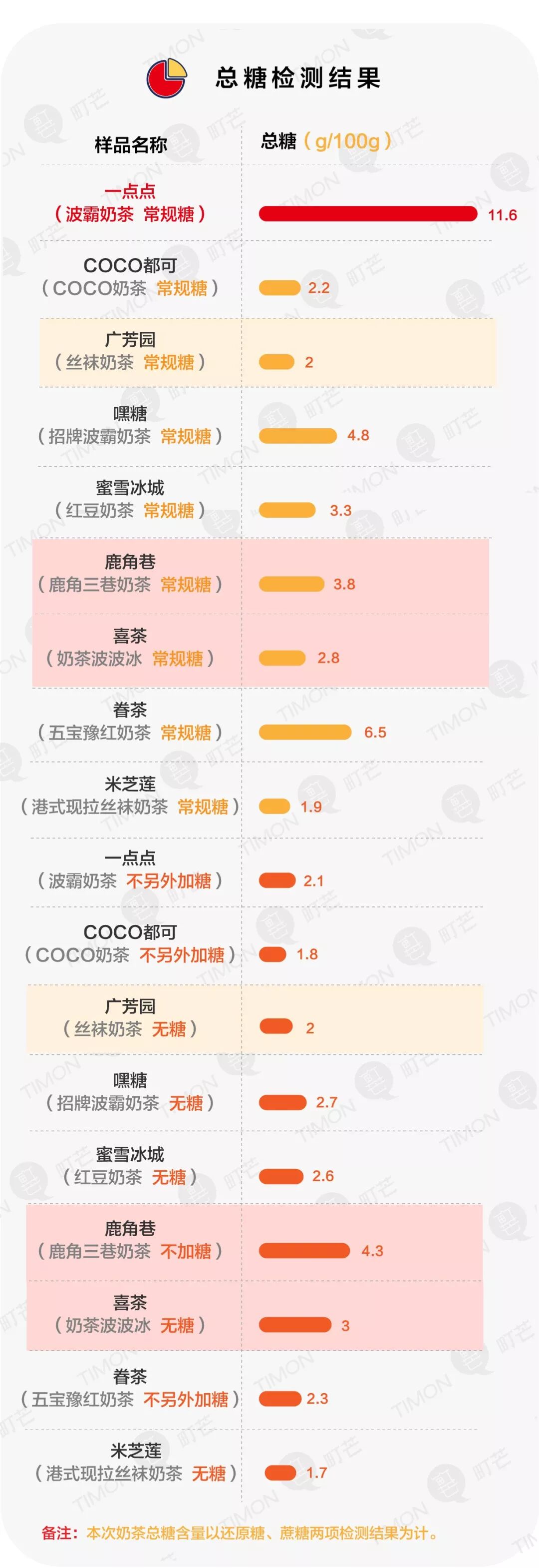 ❶ 产品标识为一点点常规糖奶茶总糖含量最高,一杯500g奶茶总糖含量相当于12.9块太古方糖;