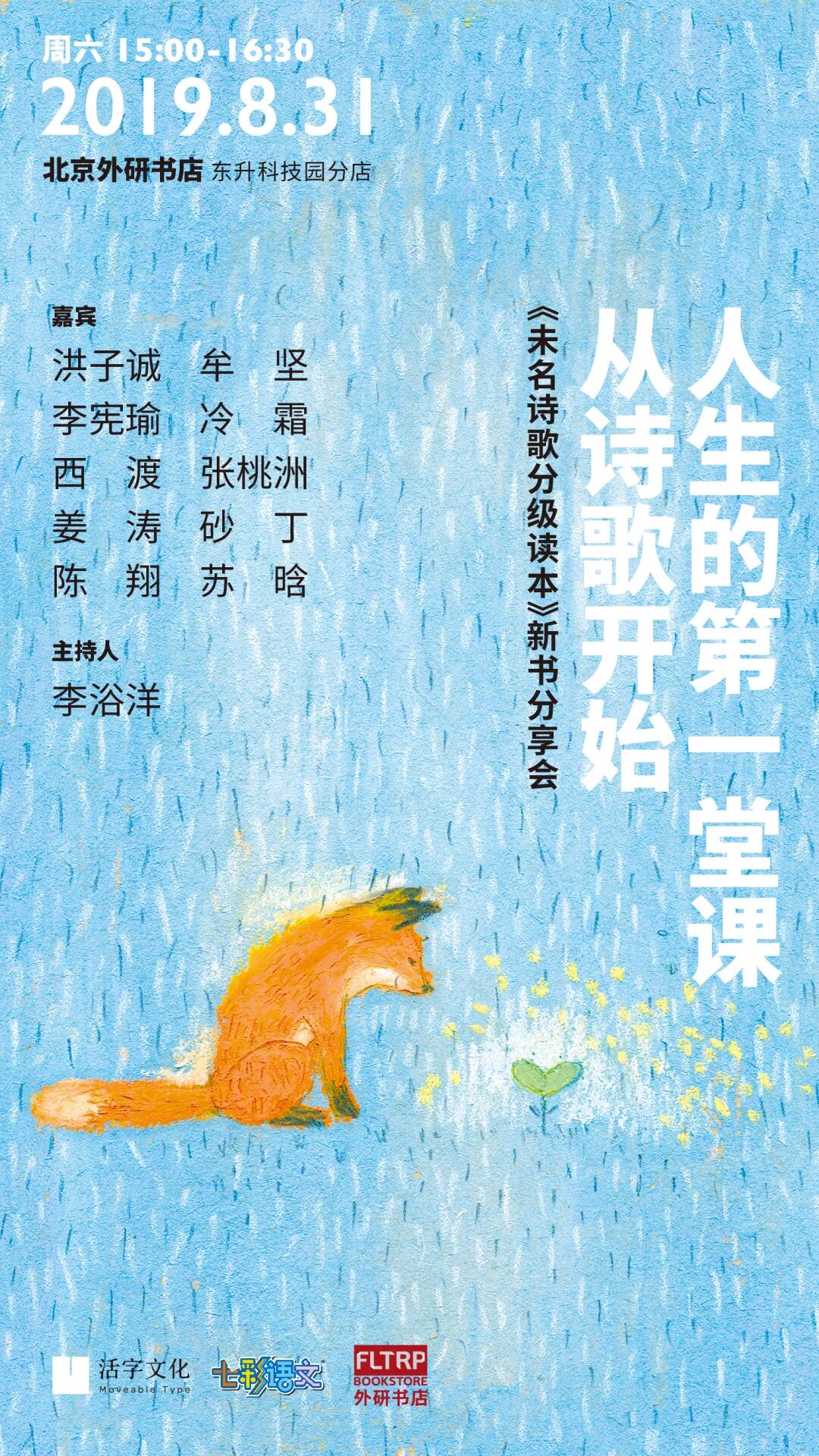 8月31日下午三点半,我们邀请了洪子诚老师等《未名诗歌分级读本》选编团队和青年诗人们,一起来到北京外研书店东升分店,一起来探讨诗歌为我们创造的世界。