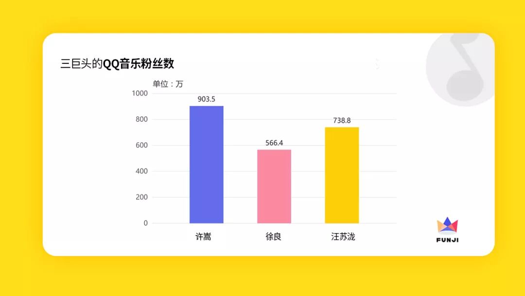 既然是QQ音乐三巨头的发展史,那我们就随时使用数据论证一下,本节目所有数据由市面上最严谨最全面最不近人情的艺人媒体数据公司欢集提供。