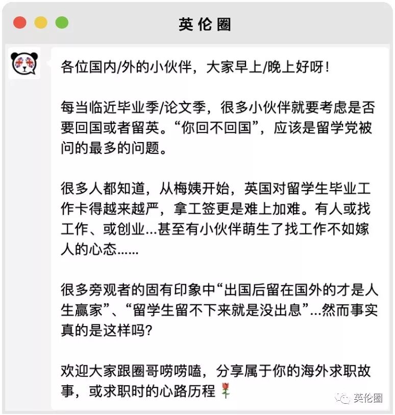 - 经授权刊载至 英伦圈 转载授权自 英伦圈 ID: UKZONE 毕业后回国吗?”这应该是留学党们在毕业季临近,被问到最多的问题。 图:BBC 前几周的周末,圈哥就此发起了一波在线话题讨论