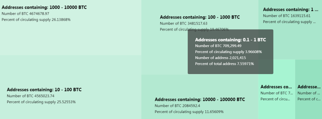 即持有0.1-1个比特币的地址数量,目前比特币小额地址数为202.14万,较上周增长1万,与某大额地址的拆分洗币有关。通常情况下,小额地址数的快速增长可以作为验证牛市行情真伪和长短的指标之一。