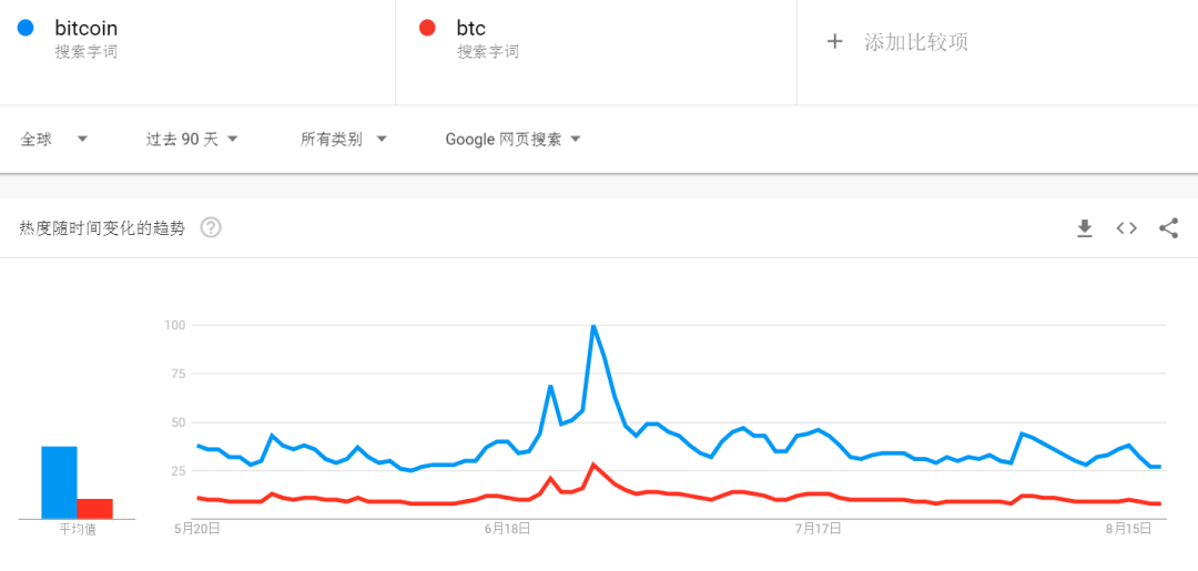 上周全球范围内的“比特币”关键词搜索量无变化,比特币的大众热度持续低迷。