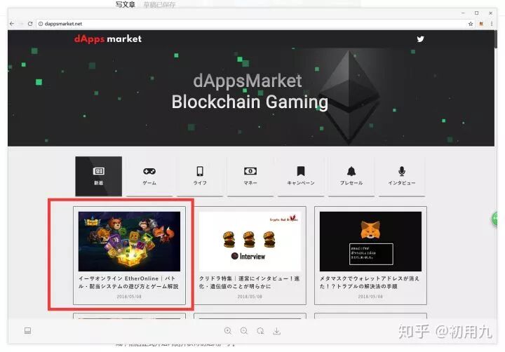 这个日本玩家把Ether.Online放到了自家Dapp商店的第一个位置去了