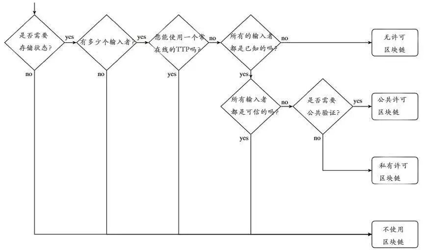 这个模型提出了几个很好的问题(特别是前两个),然而如果要说我的观点,我是认为“区块链还不能有效地做到这一点”和“区块链可能有用但需要进行进一步研究”这两点,都应该指向“不使用区块链”,因为共享书写访问权限和输入者之间的不信任是两个关键特征。
