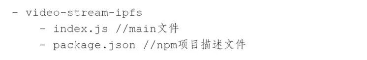 之后,新建项目文件夹video-stream-ipfs,并在文件夹根目录下通过npm init命令创建项目描述文件package.json。