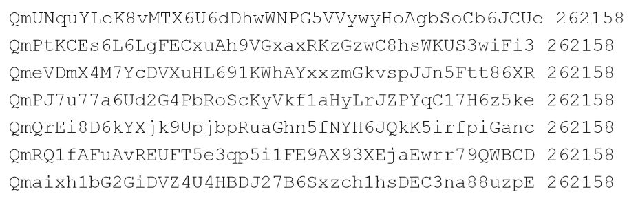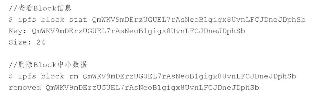 而且,任何给定的散列可以标识对象信息,也可以标识块信息。如下所示,我们可以通过ipfs block stat和ipfs object stat命令来查看Merkle DAG块和对象数据信息的区别。