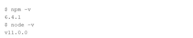 安装完成后,我们可以在终端中键入npm -v和node -v来验证环境是否部署成功。如下所示。本项目采用的是6.4.1版本的npm包管理工具和11.0.0的Node.js环境。