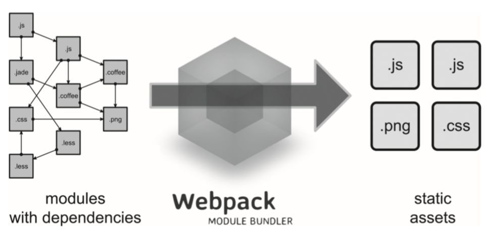 如下图所示,Webpack的工作方式是:把你的项目当作一个整体,通过一个给定的主文件(如:index.js),Webpack将从这个文件开始找到你的项目的所有依赖文件,使用loaders处理它们,最后打包为一个(或多个)浏览器可识别的JavaScript文件。