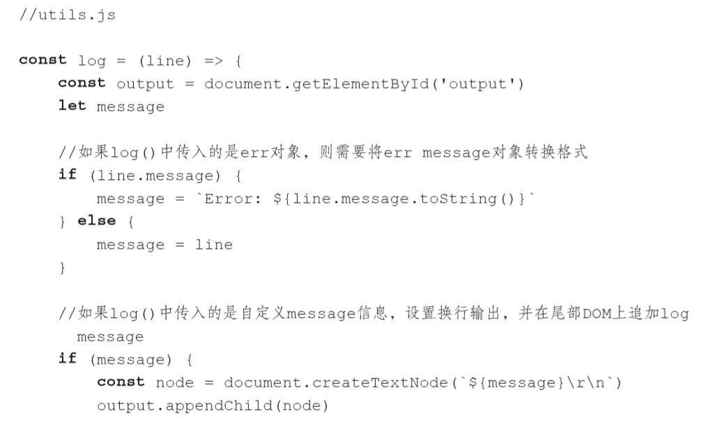 同时,我们需要统一事件流的输出格式。为此,我们新建utils.js文件和箭头函数log(),并将工具函数都集合在utils.js中管理。