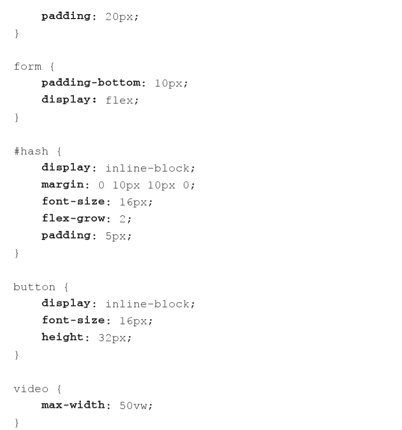 本小节将开始动手开发基于浏览器的播放器模块,播放器模块主要由视频源输入框、播放响应按钮、视频播放窗口三部分组成。首先,我们在入口文件index.html中编写播放器模块的前端元素和样式代码。