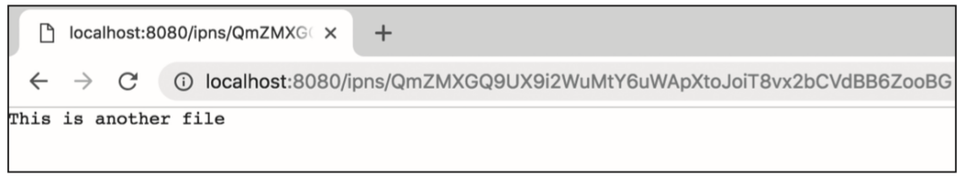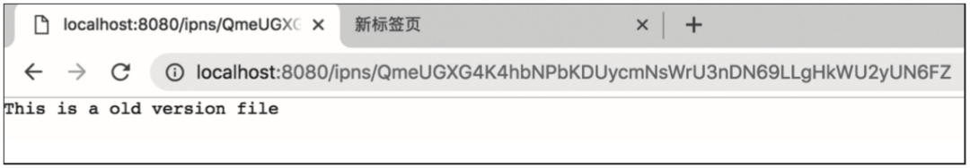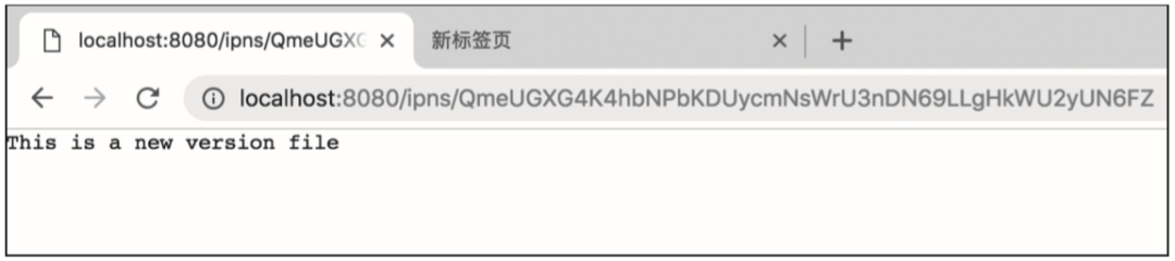 我们再次访问之前的寻址路径//localhost:8080/ipns/QmeUGXG4K4hbNPbKDUycmNsWrU3nDN69LLgHkWU2yUN6FZ可以看到新版本的内容,如下图所示:
