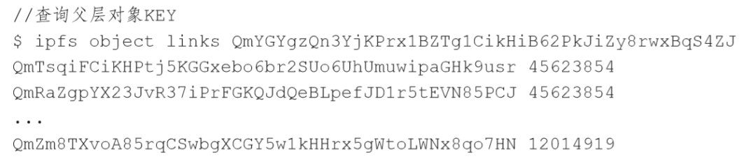 通过ipfs object links -v命令,可以验证MerkleDAG的创建情况,并从内部查看该文件的MerkleDAG结构信息和子对象信息。