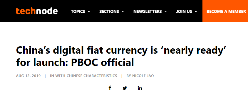 8月初,中国央行在其发布的2019年下半年工作计划中表示,央行将“加快研究中国法定数字货币”,并了解国内外虚拟货币的发展趋势。