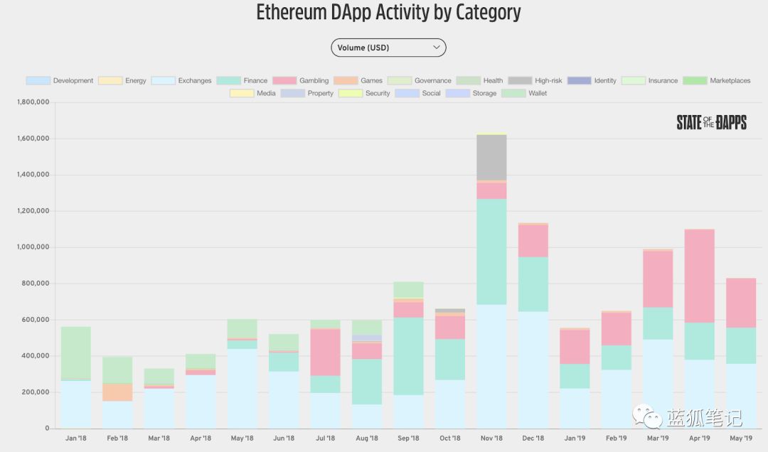 以下是指定应用类别的dApp,以太坊的表现非常突出: