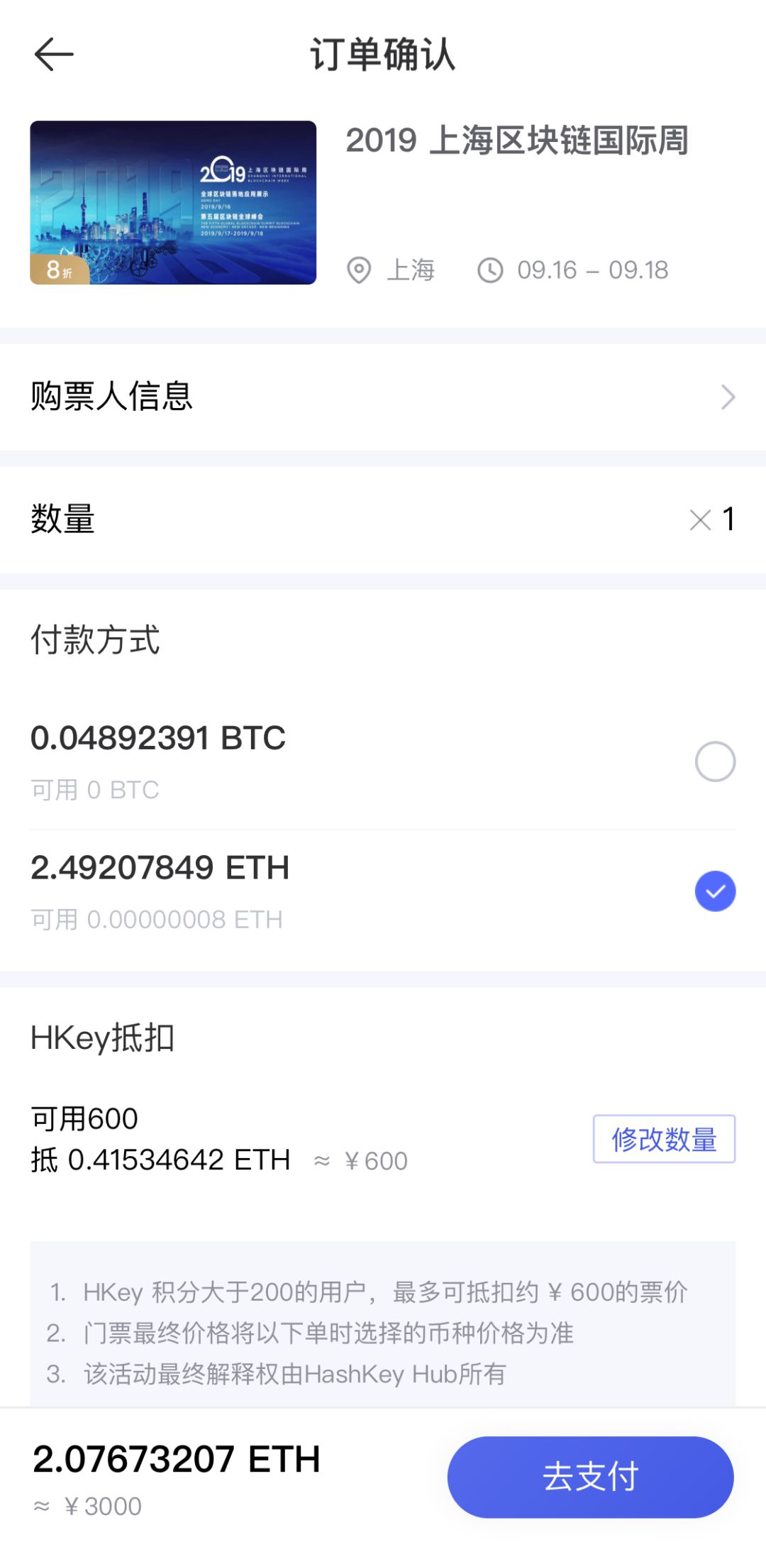 HashKey Hub平台HKey积分抵扣票价