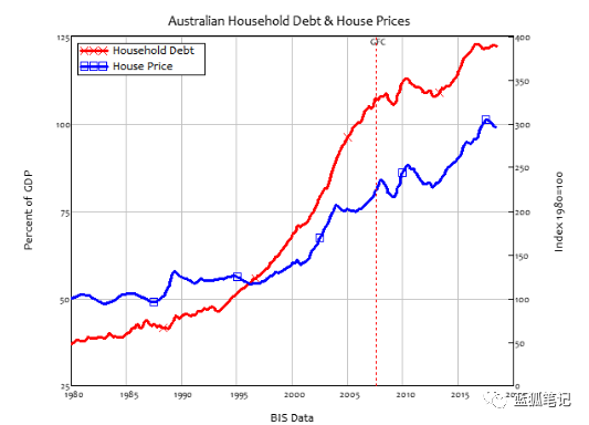 澳大利亚房价与家庭债务的相关性为0.6,来源:Steve Keen教授
