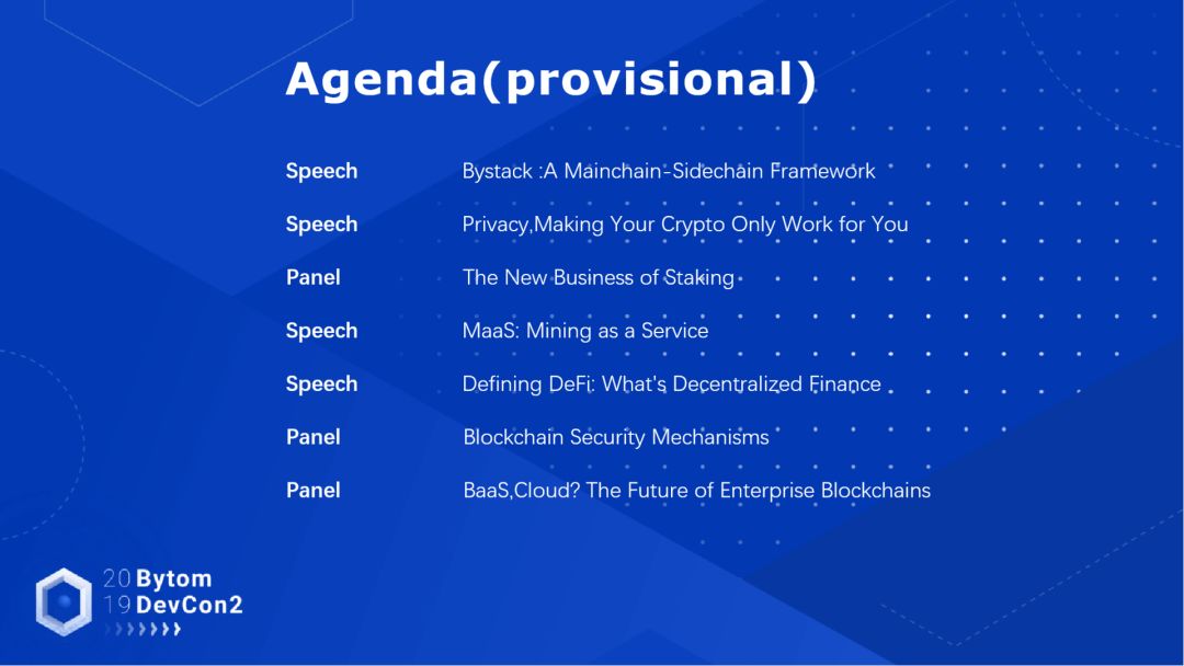 随着BAT、Facebook等巨头的加速进场,越来越多的企业开始加快自身的区块链布局脚步。本次大会也同时邀请500余位各领域一线开发者和从业者参与,共同探讨区块链技术、生态开发、AI等话题,如何使用区块链赋能现有产业,做好升级转型,同时也会就未来实际应用与商业落地展开对话与想象。