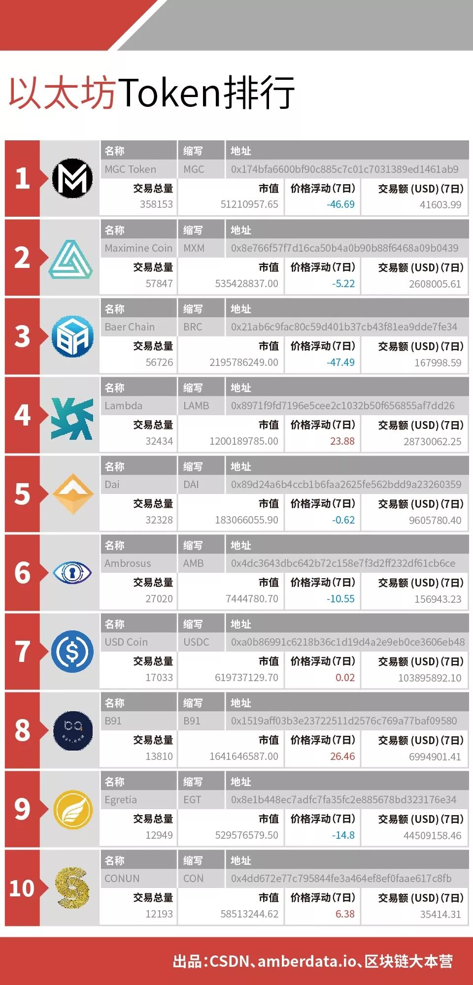 从本周起CSDN、区块链大本营(ID:blockchain_camp)将联合区块链及数字资产数据平台Amberdata,发起一个新的栏目「区块链数据周榜」(以下简称「数据周榜」)。