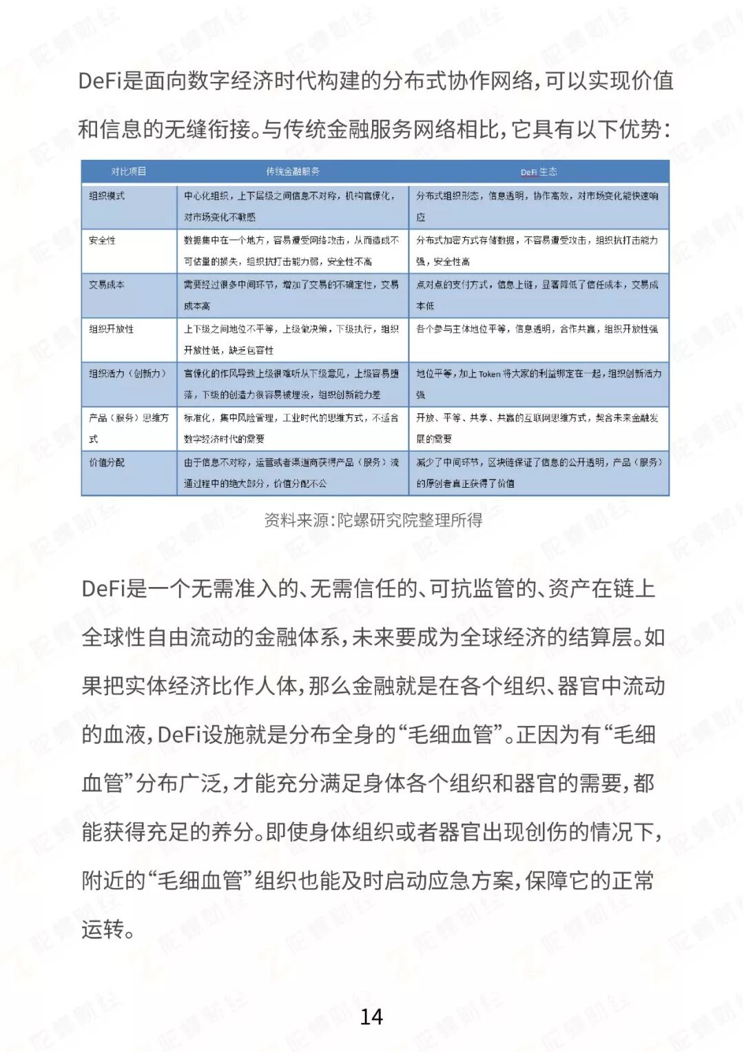 - 2018年末开始,以DeFi为代表的分布式金融,在业内引起了广泛的讨论。传统的金融模式以中央银行、商业银行、非银金融机构为核心展开支付、借贷、保险等场景内的应用。但DeFi彻底摆脱了原有的核心,以分布