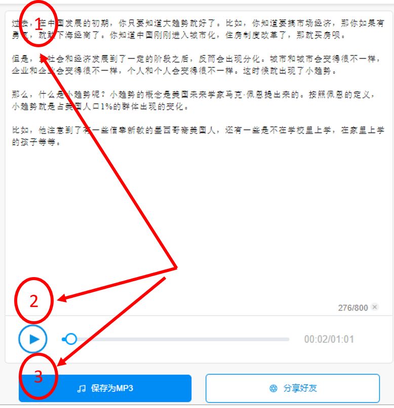 输入文字,点击播放按钮,即可转为语音,点击可保存为MP3。