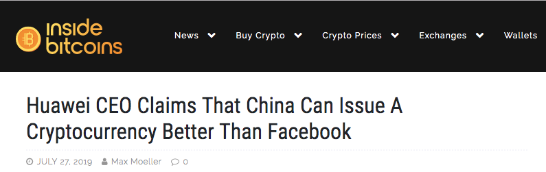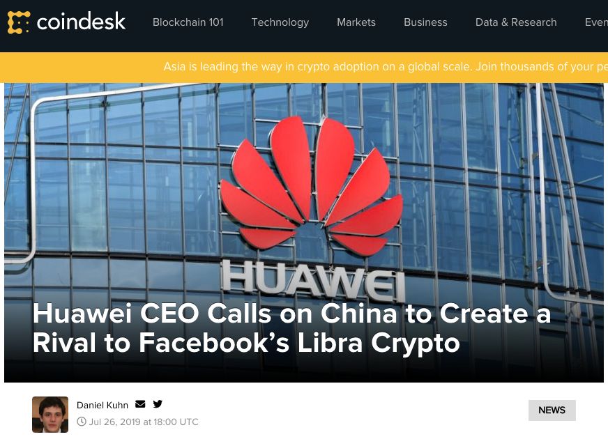 Facebook将开发自有加密货币Libra,这一具有争议和开创性的项目激起了全球各地人们的紧迫感。最近一次重要的公开评论来自华为CEO任正非,他呼吁中国政府跟上并推出自己的数字货币。任正非认为,在区块链方面,中国不能落后。
