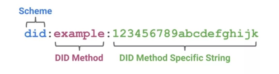在上面这个例子中,“did” 是前缀,“example” 是一个 DID 方法,后面 “123456789abcdefghi” 是具体的 DID 身份标识。