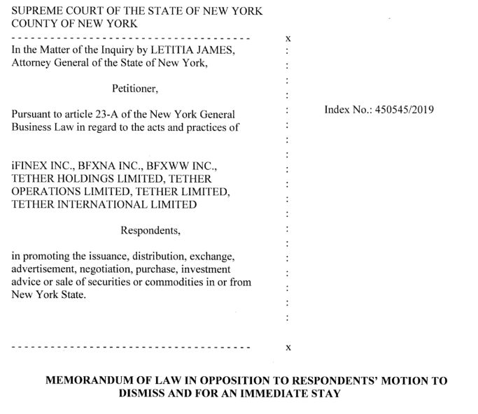 就在近日,纽约总检察长办公室(NYAG)提交了一份详细备忘录,披露Tether和Bitfinex涉嫌在纽约州进行非法交易,指控Bitfinex和Tether公司在未注册证券运营商的情况下向投资者发放美元贷款,以及为纽约地区的交易员注册海外空壳公司和名义账户,还提到了Bitfinex通过借入USDT用户储备金弥补其交易所亏损等。