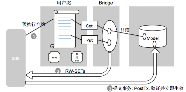 孙君意:这里更多指的是我们的数据模型,叫做XuperModel。它主要实现智能合约的虚拟机和账本的一个松耦合。在XuperModel的结构下,一个交易中数据里面通过它的Input、Output描述它的读写集,其中读集是通过哈希指针指向账本中的过往交易输出。