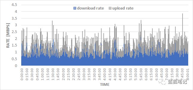 (如图是IPFS节点测试版的带宽使用情况。在此测试中,该节点未用于浏览或下载任何IPFS内容。但是,在8小时内,我们的节点已经下载/上传了超过5GB的数据。)