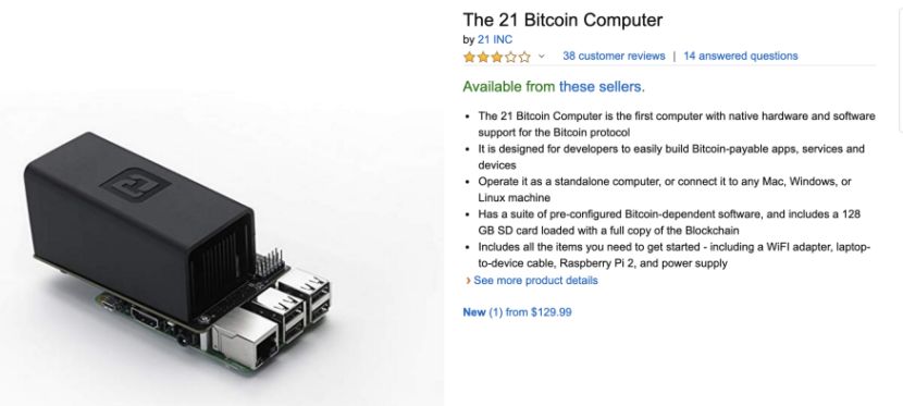 2015 年 11 月,荷兰广播网络 Vpro 纪录片推出了“ 比特币福音 ”,为数万名欧洲人科普了比特币和区块链的知识。同样在 11 月,亚马逊开始发售第一款 21 Inc. 产品,即 21 比特币计算机。